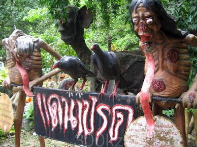 There is a unique type of roadside attraction in Thailand that had me traveling to the remote rural towns: sculpture gardens that depict Buddhist hells. Fantastically appalling, I wound up visiting four "Hells" during my travels and I hope to continue my hunt in other Asian countries soon.